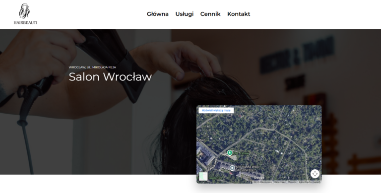Strona wykonana dla salonu fryzjerskiego we Wrocławiu